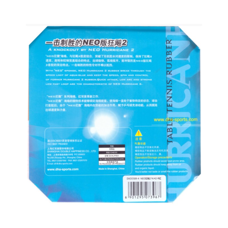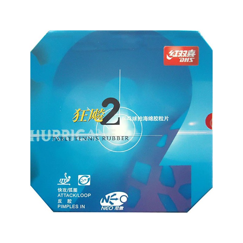 A DHS Hurricane 2 Neo com a esponja Neo quebra os limites da cola de água. Esta famosa borracha fornece poder e controlo sobre a clássica Hurricane 2 sem requerer tunning.