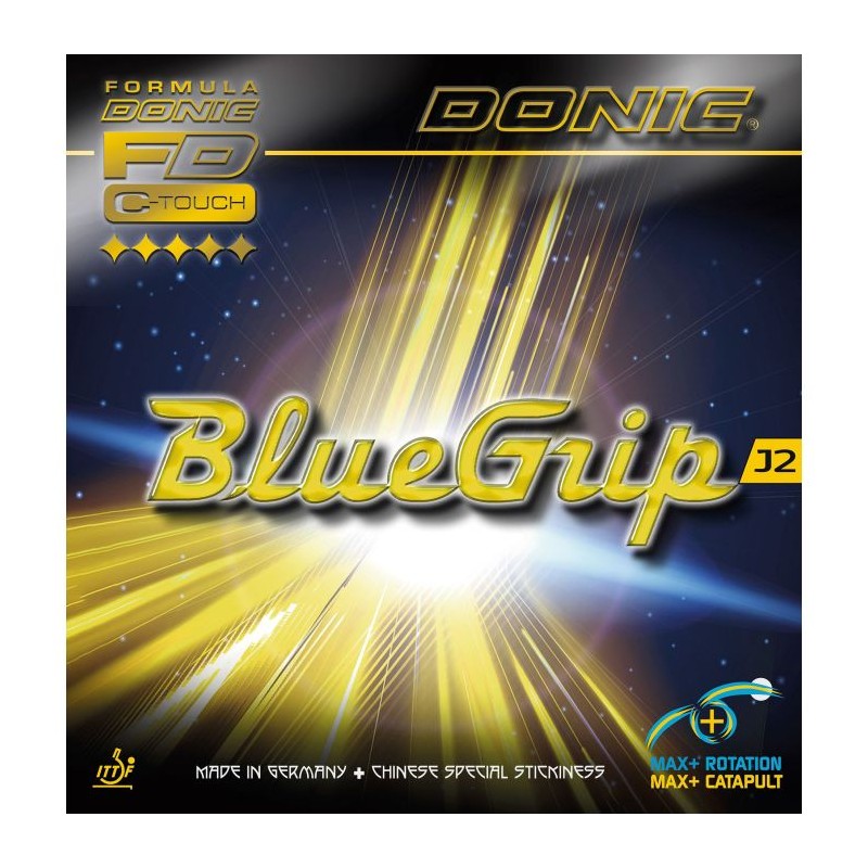 A série BlueGrip J apresenta uma combinação inovadora de duas tecnologias de borracha de alto desempenho. Desenvolvida sob a orientação do novo parceiro da DONIC, Zhang Jike, esta série inovadora une os pontos fortes das linhas Bluestar A e BlueGrip C A série BlueGrip J1 está disponível na versão mais dura (55 graus), projetada para velocidade e potência máximas.